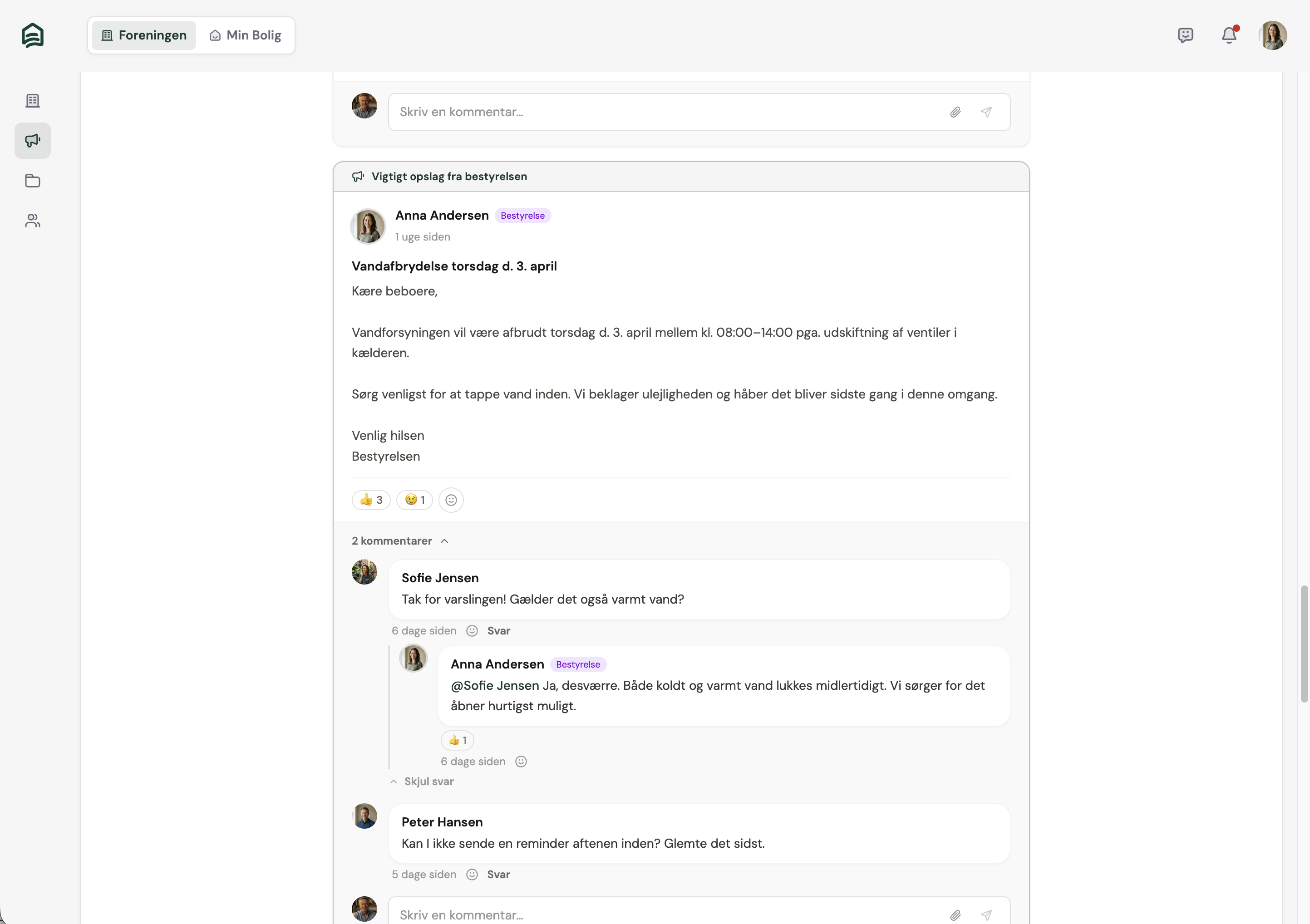 Opslag fra bestyrelsen, kommentarer og nyheder, samlet ét sted. Du bestemmer selv om du vil have besked via app, email eller notifikation på telefonen.